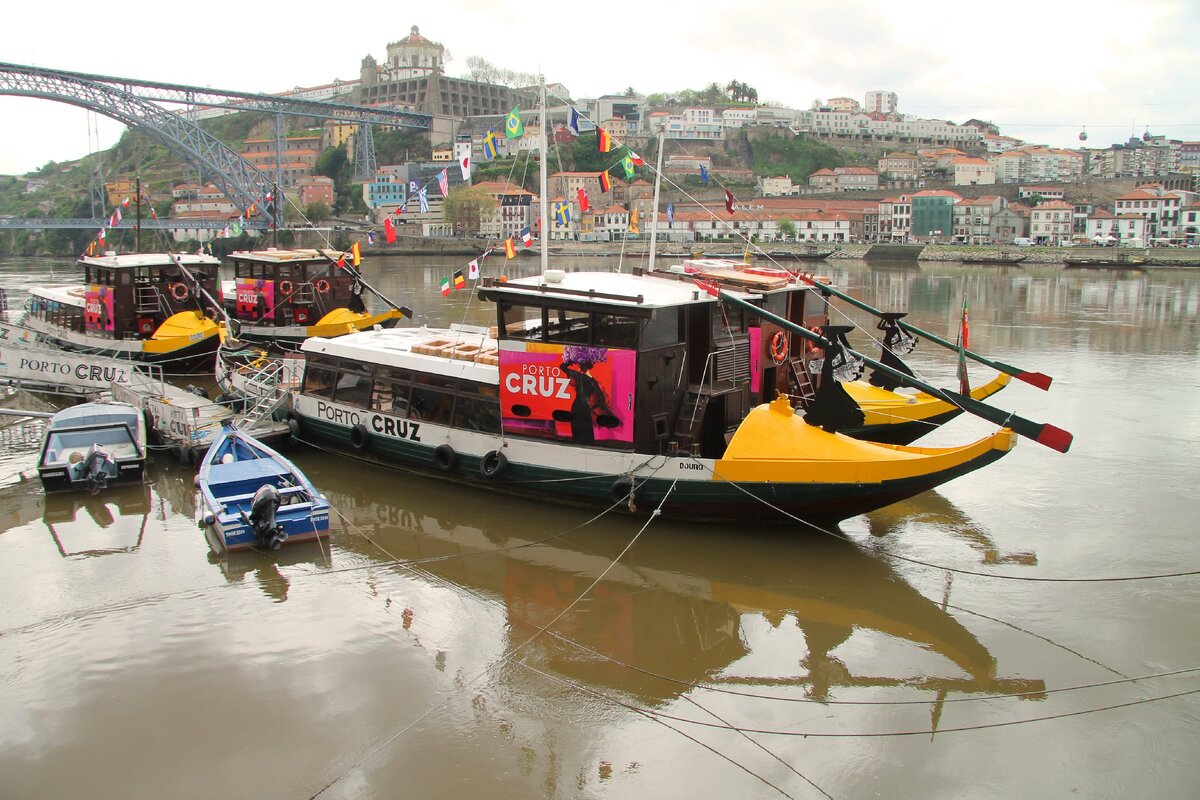 Город Порто - вторая столица Португалии с особым колоритом, налетом старины и славной историей. В первой части статьи мы побродили по узким улочкам в верхней части города и увидели красивейшие соборы Порто. В этой статье прогуляемся по набережной и попробуем понять портовую сущность города: Порто из-за своего холмистого расположения имеет многоуровневую структуру: Рельеф города вместе с постройками постепенно "сползает" от башни Клеригуш к набережной реки Дору: Район набережной носит название Рибейра. Здесь обустроен променад вдоль реки Дору: С утра пока еще мало людей и местный бизнес подвозит свою продукцию. После обеда здесь будет не протолкнуться: На набережную выходят своими разноцветными фасадами небольшие домики в несколько этажей: Цветовая палитра этих фасадов отличается от красно-желтых цветов, общепринятых в Порто: На абсолютно любой фотографии набережной Рибейра бросается в глаза двухуровневый мост, соединяющий два берега реки. Это мост Луиша I, построенный учеником Эйфеля:
