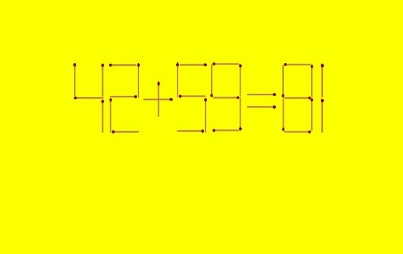 Здравствуйте! Сегодня я сделал для Вас три задания на супер развитие логики и мышления! У Вас высокий IQ? Давайте ещё лучше улучшим его! Вам будут представлены три задания, три примера. В каждом примере надо переставить всего 1 спичку и сделать пример верным! Включаем логику, мышление, внимательность и приступаем к решению. Получится ли у Вас решить все три задания? Задание номер 1. 42+59=81 Ну как по сложности было первое задание?? Да, задание не очень сложные, они на супер развитие логики! А сможете верно переставить одну спичку примере 78-28=98? Задание номер 2. 78-28=98 Поставьте лайк к этой статье! Это необходимо для помощи нашему каналу в развитие! Также приступайте решать задание номер 3. Задание номер 3. 95-18=53 Смогли решить все задачки? Можете подсмотреть варианты ответа здесь Пишите свои решения в комментариях! Мы сегодня очень хорошо тренировали логику! Подписывайтесь на наш канал, чтобы не пропускать в ленте наши головоломки! Жмите на лайк к этой статье, если понравилис
