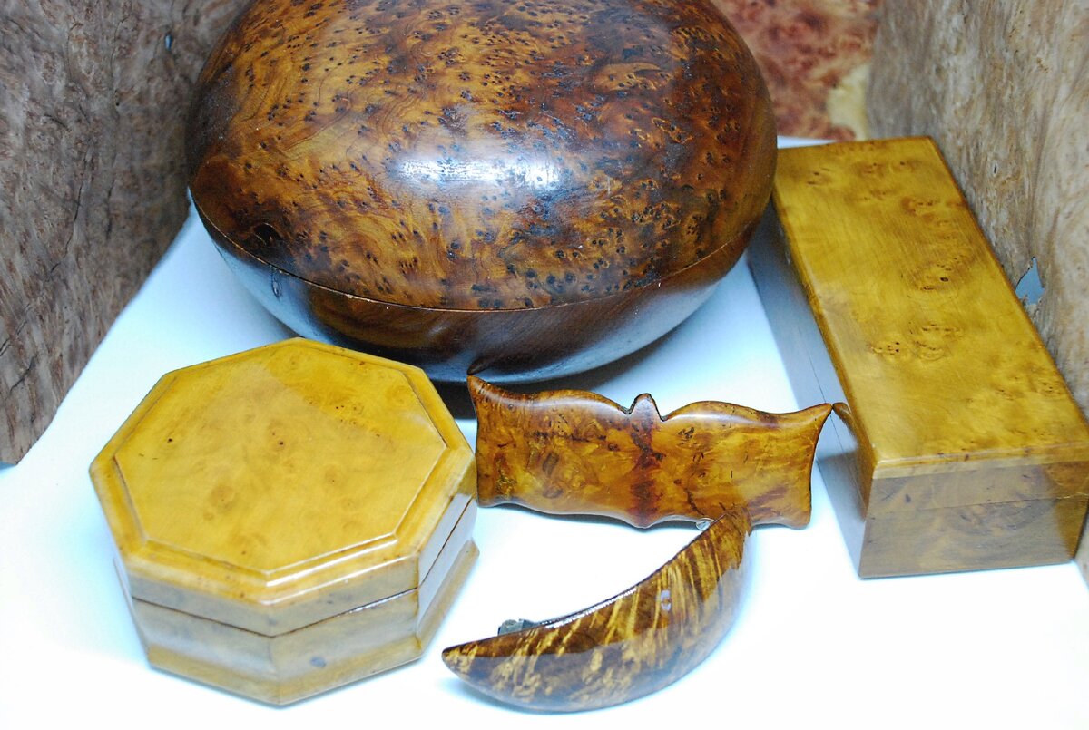И такие изделия всегда будут отличаться по красоте рисунка - части капа, взятые из одного нароста, будут иметь разный рисунок текстуры. Настолько плотно переплетены волокна внутри капа.