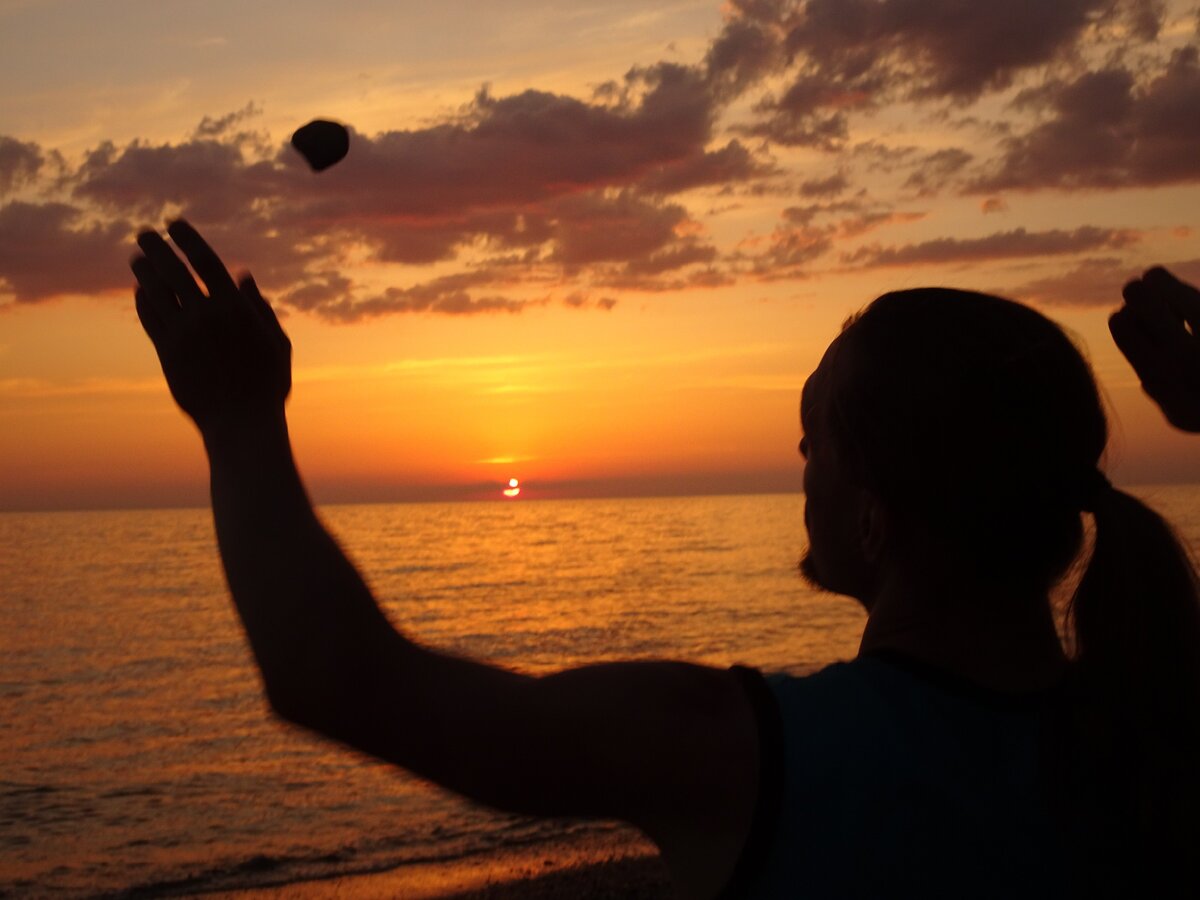 2. Как первый вариант, но, наоборот, кидаем и ловим теперь другой рукой.