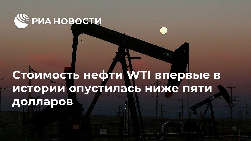 Стоимость фьючерса нефти марки WTIпоставкой в мае впервые в истории опустилась ниже пяти долларов за баррель, свидетельствуют данные торгов. Цена майских фьючерсов упала почти на 75 процентов — до 4,77 доллара за баррель. До сегодняшнего дня исторический минимум составлял 9,75 доллара за баррель. Стоимость июньских фьючерсов WTI упала почти на одиннадцать процентов, до 22,29 доллара за баррель. В свою очередь, цена фьючерсов на поставки в июне североморской нефтяной смеси марки Brent упала на пять процентов — до 26,55 доллара за баррель. При этом трейдеры продолжают распродавать актив, так как срок торгов майским фьючерсом истекает во вторник. Падение цен на нефть Пандемия коронавируса, охватившая практически все страны мира, вызвала рекордное падение спроса на сырье. Цены на нефть также резко упали из-за неспособности ОПЕК+ договориться о продлении сделки или параметрах сокращения добычи. В начале апреля котировки начали расти на фоне сообщений о новом соглашении. В итоге сделка была
