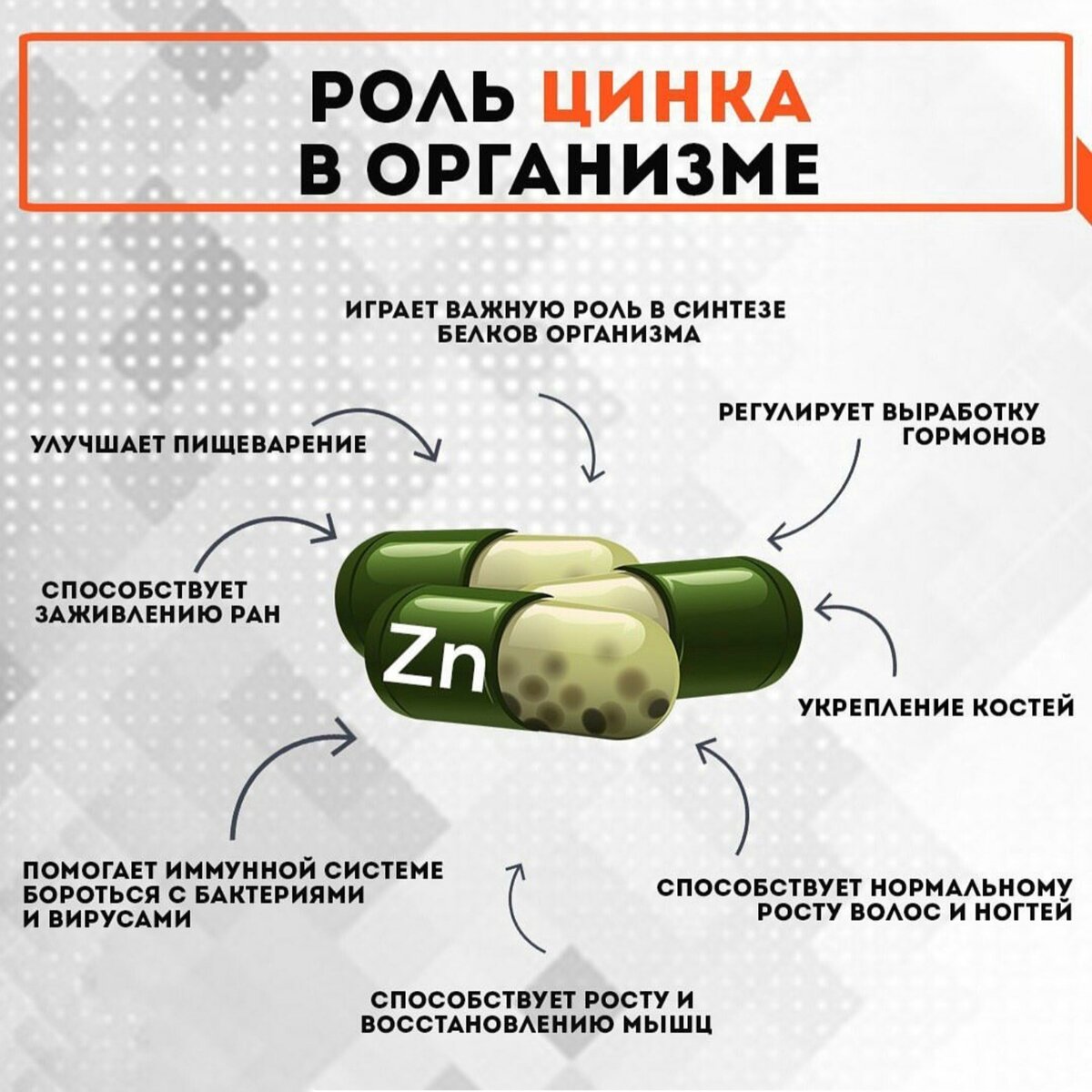 Цинк входит в состав почти 200 ферментов, поэтому его функции в организме чрезвычайно разнообразны. Это: • обеспечение иммунной защиты организма; • участие в синтезе гормона тестостерона, в образовании сперматозоидов; • обеспечение нормального состояния кожи, волос, ногтей • защита от стресса; • участие в процессах развития мозга; Из пищи и воды цинк всасывается на 50-85%, в основном в двенадцатиперстной и в начальных отделах тонкой кишки. Рекомендую употреблять цинк в хелатной форме, потому что именно цинк хелат усваивается организмом на 90-98% в то время как другие формы цитрат, пиколинат, ацетат, глюконат и оксид усваиваются от 50 до 61%. Понравилась статья?🤓 Подпишись на мой инстаграм👈