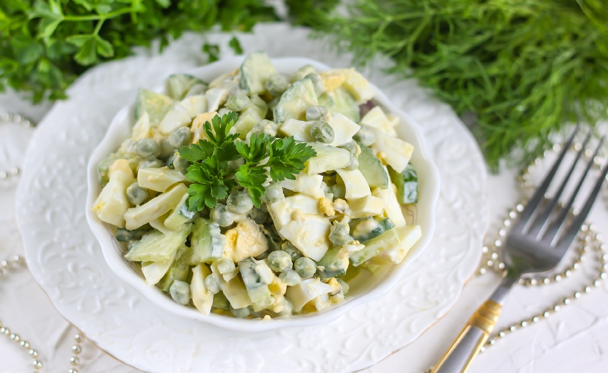 Салат с зеленым горошком, огурцом и яйцом: рекомендовано ассоциацией Накормишек
