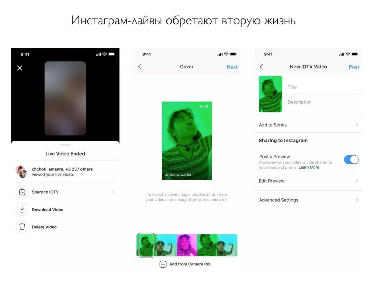 Количество прямых трансляций в Инстаграме на карантине подскочило на 70%, и компания решила развивать функцию лайвов. Скоро появится кнопка «Опубликовать в IGTV» в окошке прямого эфира после его окончания. Вы сможете выбрать красивую обложку для видео, название с описанием и поместить в созданную видеопапку. Это будет удобно и для зрителей, которые пропустили трансляцию; и для криэйторов контента. Тем самым, возможно, в использовании IGTV появится больше смысла. Как «убийца ютьюба» он однозначно не взлетел, а такой дорожкой IGTV может обрести свой особенный стиль: видео-болтовня с инстаграм-звездами. Как узнавать новые функции социальных сетях