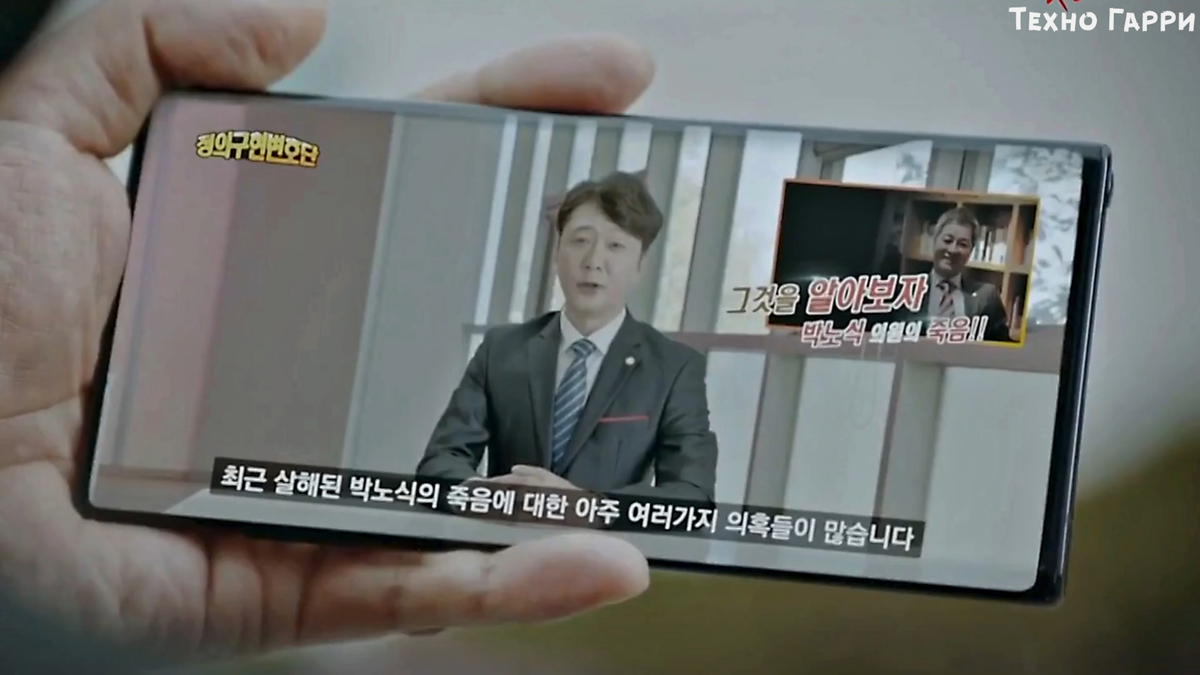 Уже второй раз мы можем видеть дизайн мечты смартфона Samsung. Вот первый. А это кадр из Южнокорейской драмы, где мы видим смартфон в стиле Galaxy Note - у него квадратные углы и есть S-Pen, так что можно уверенно сказать, что здесь имеется в виду Galaxy Note. И на этом кадре мы снова видим полностью безрамочный смартфон без отверстий или вырезов под фронтальную камеру, что, видимо, означает, что камера под дисплеем. Но, друзья, я надеюсь вы понимаете, что сериалы и кино - это не настоящее. Я честно не знаю, как этот смартфон оказался в южнокорейском фильме. Ведь можно было взять Galaxy Note 10, если у них контракт с Samsung, или любой другой существующий. Но они использовали именно Note телефон, а мы все ждём Galaxy Note 20. Может быть Samsung действительно как-то сотрудничают с этим фильмом, а может просто они наклеили зеленку на телефон и потом поленились делать отверстие, ну или как это там делается в кино? Как бы то ни было, это то, как выглядит дизайн к которому в скором време