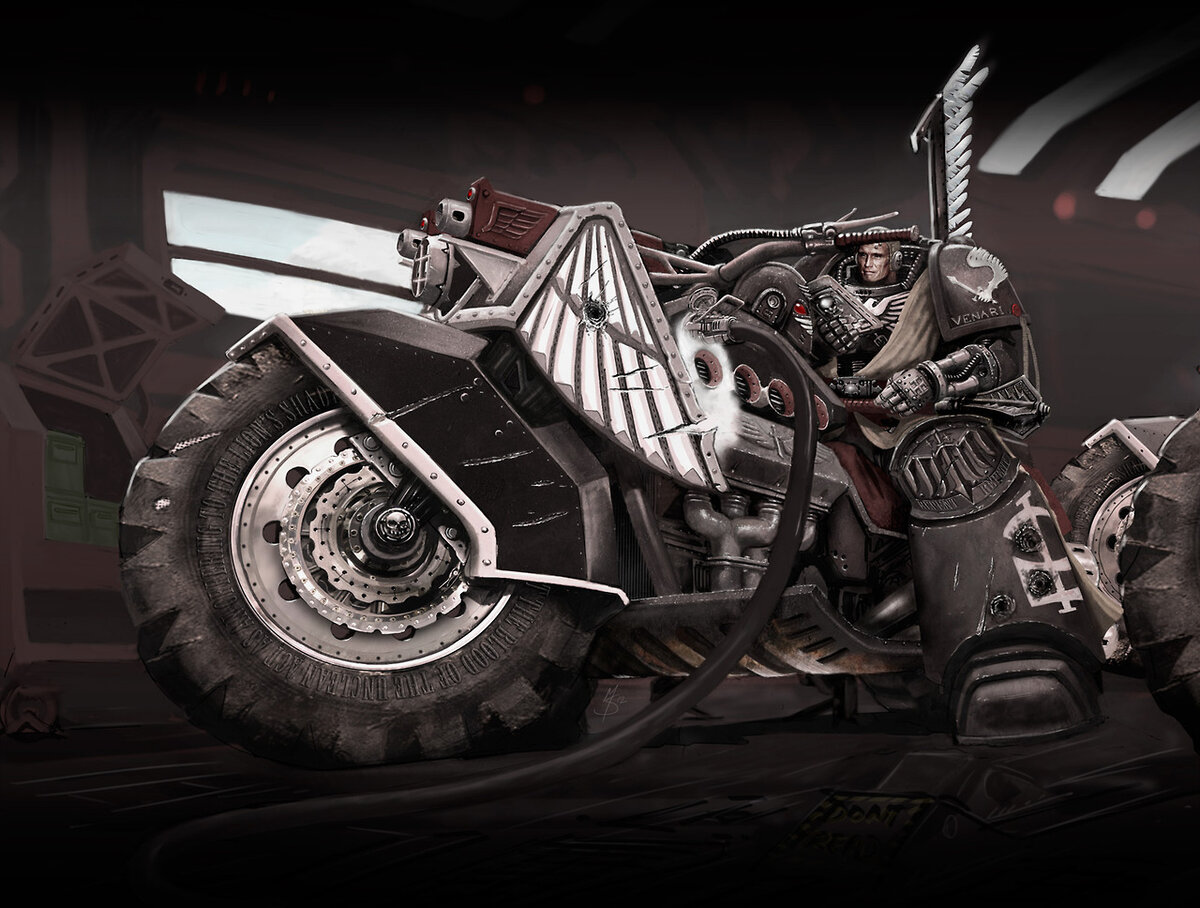 Основной сок я рассказывал вам в статье, посвященной Крылу Смерти, повторяться не буду. Если интересно - вэлком туда, пожалуйста, ссылку в конце поста прикреплю. Суть воронят примерно такая же, как и у смертоносцев - попасть к ним могут лишь закаленные ветераны, доказавшие свою преданность Темным Ангелам в многочисленных боях. Вот только в этом случае одной верности маловато. Нужна квалификация, кандидат должен быть первоклассным пилотом / водителем. И бойцом, ведь драться придется в "седле" железного коня. А уж техникой обеспечат.