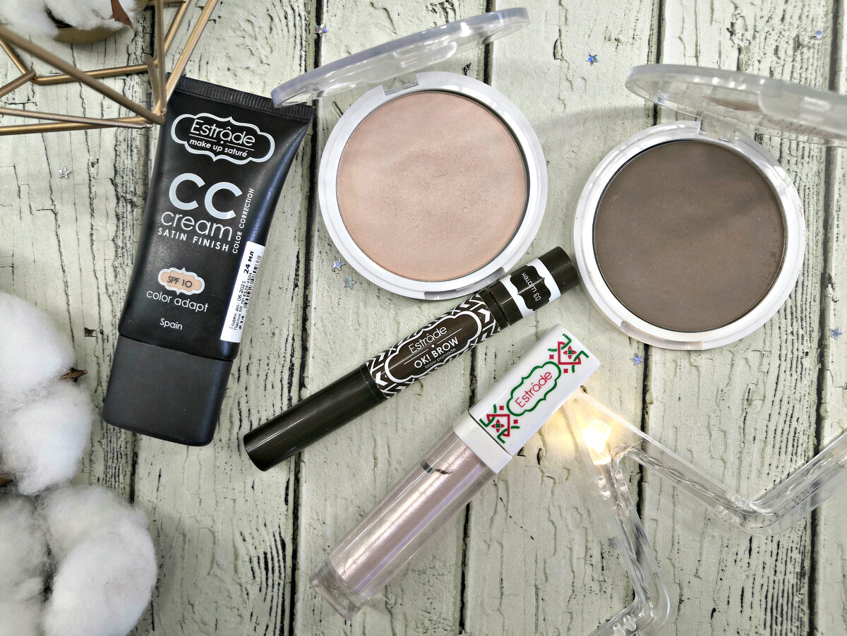 Доброго и солнечного дня☀️ Хочу поделиться с вами мнением на продукты от Estrade и сделать ими макияж. В статье вы найдете информацию по отличным продуктам, которые можно купить примерно за 300 рублей и наоборот, на что не стоит тратить свои средства. ❤️Тональный крем Estrade СС cream satin finish. Финиш у тона сатиновый, жирный блеск появляется уже спустя полтора часа, тон быстро начинает плыть, оголяя недостатки кожи. Соответственно, тон нужно обходить стороной обладательницам жирной и комбинированной кожи. Покрытие не скроет дефекты, а лишь слегка выровняет общий тон. Подчеркивает шелушения. ✅Моя оценка: 3. ❤️ Помада для бровей Estrade OK! BROW. Люблю оформлять ей брови. Приятная кремовая консистенция позволяет растушевывать её в легкую дымку или сделать брови поярче. Есть кисть в комплекте, что несомненный плюс. Пользуюсь ей периодически на протяжении полугода, помада не засохла и не поменяла своих свойств. ✅ Моя оценка: 5. ❤️Сияющий гель Estrade Disco. Легкая муссовая конс