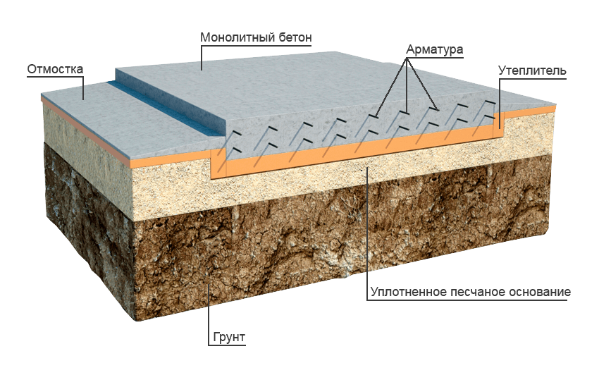 Различают два вида монолитного фундамента: это простой фундамент и армированный. Армированный фундамент называют железобетонным. Простейший монолитный фундамент состоит из бетона определенной марки, чаще всего берут 50.