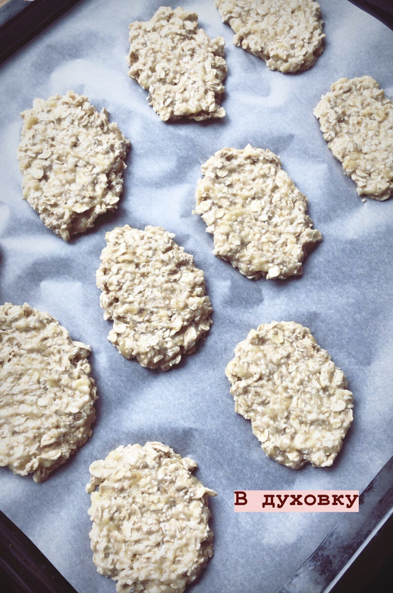 Застелите противень пергаментом. Сделайте небольшие шарики из теста, надавите сверху вилкой и сформируйте печенье, можно оформить в виде батончиков (у вас получатся полезные мюсли батончики, прекрасная альтернатива покупным).