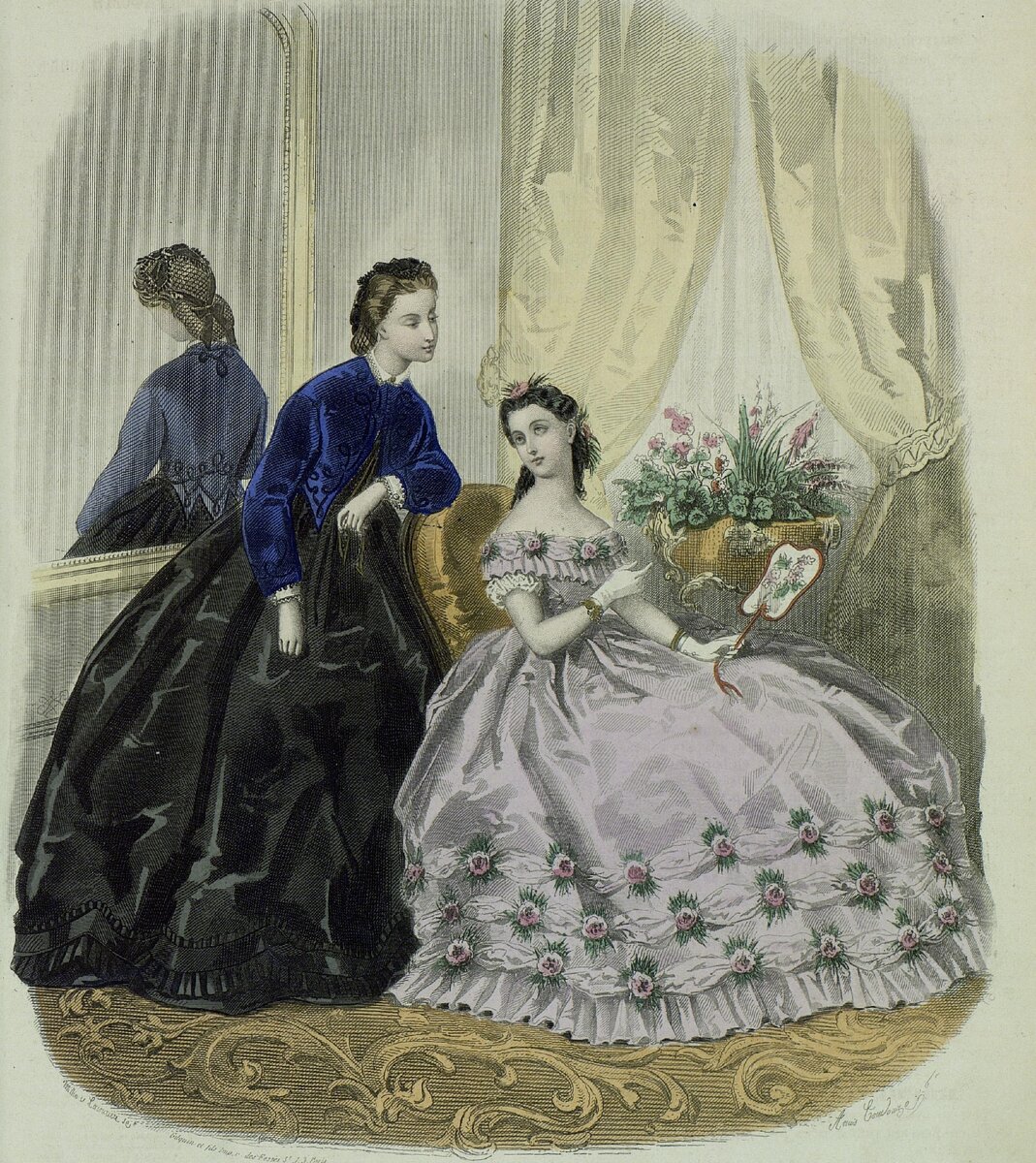 Поскольку мы начали рассматривать 1864 год, то вполне логично было бы изучить, в чем собственно этот год встречали, по крайней мере, дамы, полагавшие себя не чуждыми моды. Специфичность ситуации заключалась в том, что начало любого года в пореформенный период рассматривалось как не что вроде модного межсезонья, в которое «донашивали» новики прошлого года.
