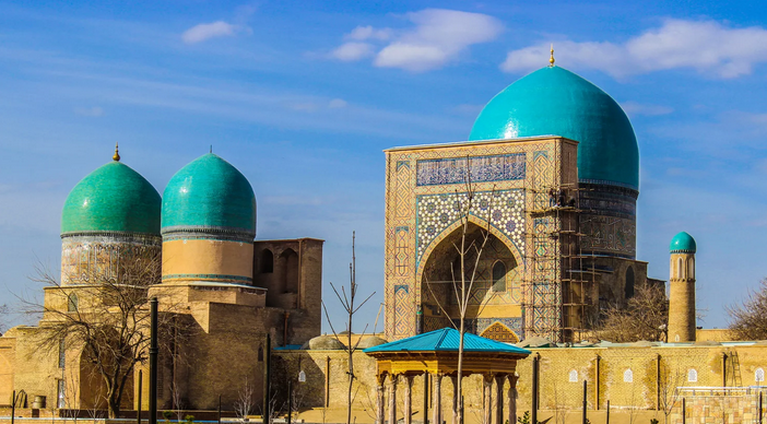 Въезжая в Шахрисабз сегодня сразу бросаются в глаза, переливающиеся на солнце три голубых купола. Один – очень большой, принадлежащий мечети Кок Гумбаз. Два поменьше, символизирующие надежду и покорность, - мавзолеи мудреца Шамсиддина Кулала и Усыпальница рода тимуридов (Купол Сейидов).