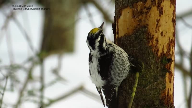 Занесенного в "Красную книгу Владимирской области" трехпалого дятла заснял за работой натуралист Михаил Малышев. Эта встреча произошла в пригороде Владимира, микрорайоне Юрьевец, сообщил он в паблике "Природа Владимирской области". Такие птицы обычно крупнее малого, но мельче большого пёстрого дятла - то есть, размером со скворца, рассказывает портал "Птицы Европы". Характерное отличие: на ногах по три пальца — два направлены вперёд и один назад. У трехпалого дятла окраска пёстрая с белой полосой вдоль спины. Грудь, брюхо и подхвостье грязно-белые с хорошо заметными продольными и поперечными пестринами. У самца темя с ярко-жёлтым пятном, у самки — белесое с чёрными пестринами. Он населяет хвойные или смешанные леса таёжного типа с обилием усыхающих или сухостойных деревьев. Дупло строит в сухостойных или обгоревших деревьях, трухлявых пнях, предпочитая осину, ель, сосну, чёрную ольху. Насиживают кладку и выкармливают птенцов оба родителя. Птенцы вылупляются голыми и слепыми. За год в