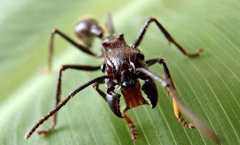 Это не бред и не шутка, такое "шитье" описано в учебнике по истории медицины и фармации. Таким способом пользовались бразильские индейцы. Они использовали больших муравьев с сильными челюстями для зашивания ран. Технология такова: муравьев подносят к сближенным краям открытой раны, когда муравьи захватывают части кожи, тем самым "сшивая" рану, им отсекают туловище. В следствие данной операции происходит механическое сшивание раны и обеззараживающее действие за счет муравьиной кислоты. Головы остаются в ране до полного заживления. Для этого используется муравей-пуля - вид крупных тропических муравьев. Они обладают сильнейшим ядом, превосходящим по силе воздействия яд любой осы или пчелы. Длина их тела достигает от 18 до 25 мм. Длина жала до 3,5 мм, длина резервуара яда 1,9 мм (диаметром 1 мм), между ними проток длиной 3 мм. За это они получили такое название. Кроме этого, муравьев использовали в обряде инициации в племени Mawe people. Обряд инициации проводится для того, чтобы стать
