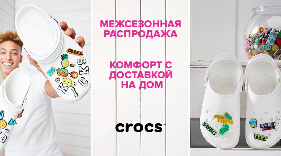 За скидками на обувь предлагаем заглянуть в Crocs. На сайте проходит большая распродажа, где вы можете подобрать себе качественную обувь из большого ассортимента и сэкономить до 70%.