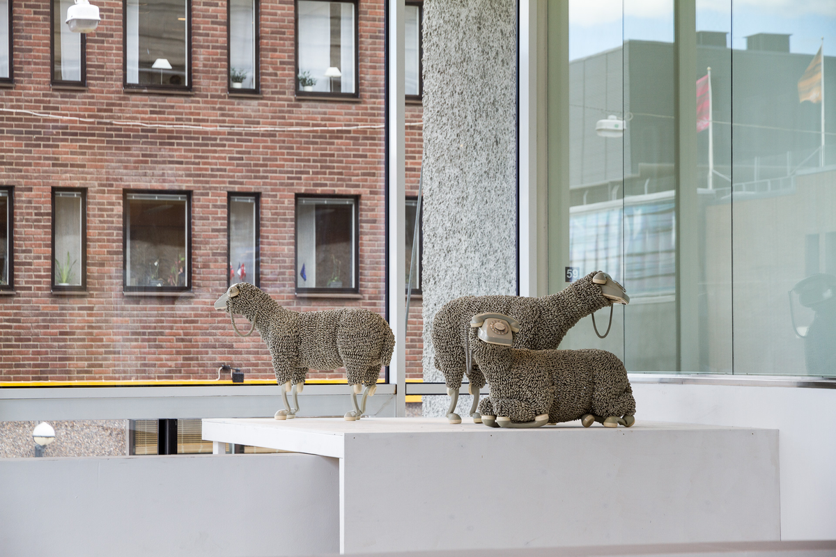 У кого ещё в современном мире остался дома стационарный телефон с проводом? Практически все они отправились на переработку в Китай, а вот некоторые попали в руки необычному французскому художнику Жану-Люку Корне (Jean-Luc Cornec). В музее связи во Франкфурте располагается его странная экспозиция: это разноцветное овечье стадо, насчитывающее 32 головы. Эти кудрявые парнокопытные имеют самое непосредственное отношение к помещению, в котором находятся, так как полностью собраны из раритетных телефонов. Их ноги сделаны из трубок, головы — из самих аппаратов, а густая овчина — из закрученных проводов. Автор считает, что в век цифровых технологий его необычные скульптуры являются напоминанием о том, как быстро двигается прогресс: всего за полвека стационарный телефонный аппарат стал такой же «древностью», как, например, керосиновая лампа или бабушкин самовар. Работы Корне — ещё одни прекрасный пример творчества из подручных материалов. Его телефонные овцы ещё долго будут удивлять и заб