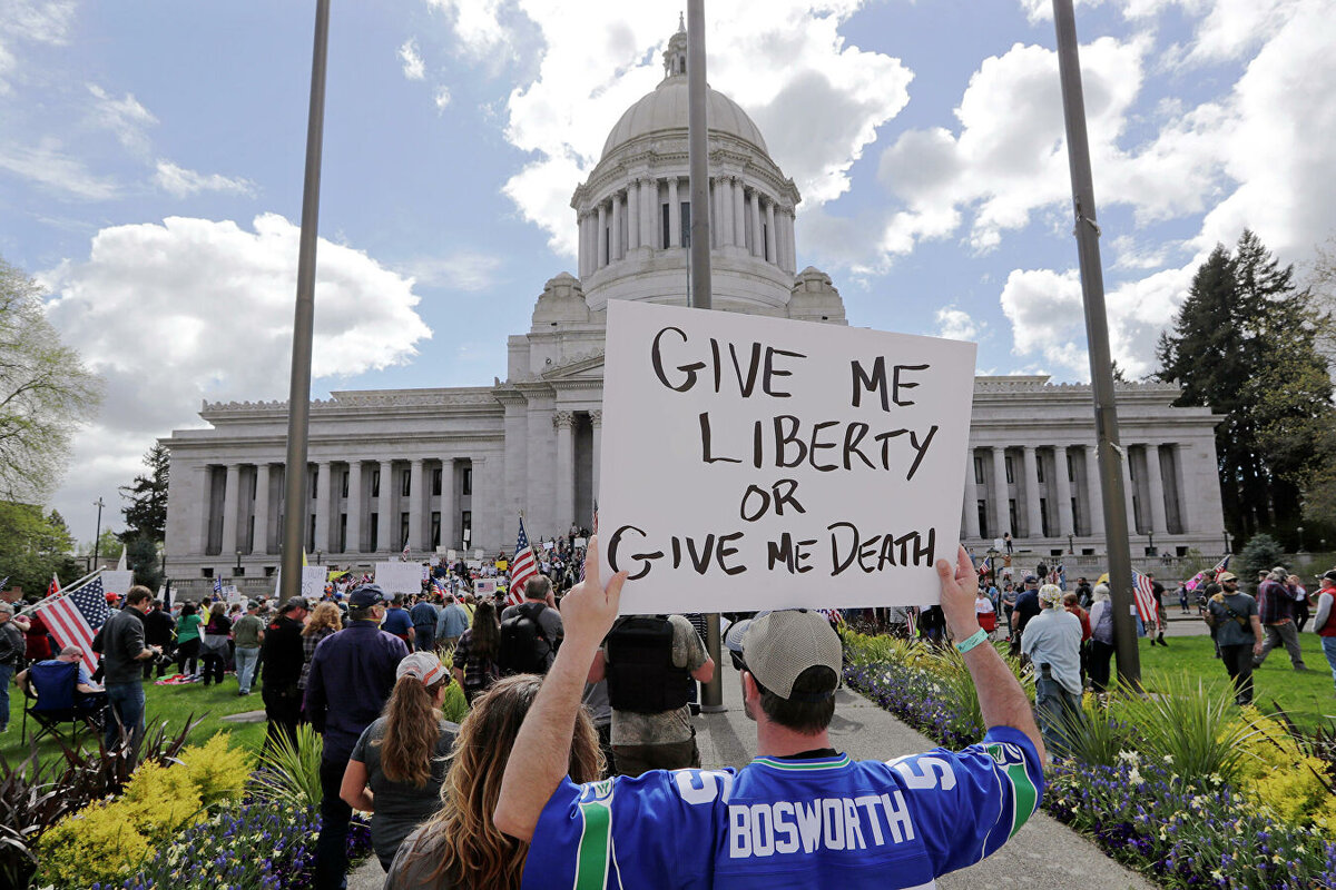 Как сообщает BBC, в штатах Аризона, Колорадо, Монтана и Вашингтон прошли шествия (в столице Вашингтона Олимпии собралось не менее 2,5 тысячи антикарантинников), толпы поменьше вышли на улицы еще примерно в полудюжине штатов.
