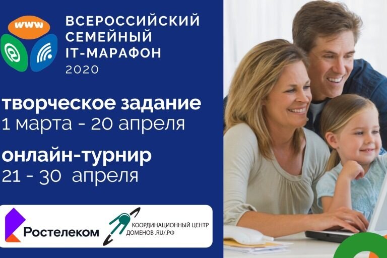 Соревнования пройдут в два этапа. «Ростелеком», Координационный центр доменов .RU/.РФ, Академия инновационного образования и развития и Фонд «Разумный интернет» приглашают принять участие в IV Всероссийском семейном ИТ-марафоне. Соревнования позволят детям, учащимся 5–11 классов, родителям, а также их родственникам и близким друзьям проверить цифровую грамотность, повысить навыки работы с информационными технологиями, проявить творческие способности. ИТ-марафон пройдет в два этапа и завершится в Международный день семьи, который ежегодно отмечается 15 мая. Семейный ИТ-марафон проводится в четвертый раз в рамках реализации государственной политики в области защиты детей от негативной информации и формирования культуры общения в виртуальной среде. Турнир пройдет на сайте проекта «Изучи интернет — управляй им». Предварительная регистрация проходит одновременно с первым этапом: со 2 марта по 20 апреля. Соревнования пройдут в два этапа: Победители ИТ-марафона определяются по сумме