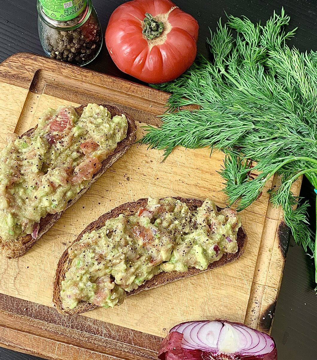 Очень люблю авокадо, особенно в этом соусе. Его нежная маслянистая текстура, в сочетании с пикантным красным луком, кинзой и помидорами, да на поджаренном хлебушке... Ммм, прекрасное начало дня! Итак, на 2 порции нам нужно: 2 спелых авокадо