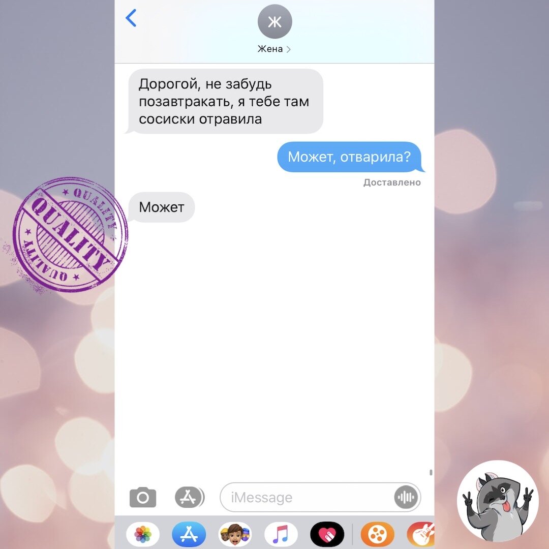 Сарказм - уникальный пласт в мире юмора. Люди, которые владеют им могут легко сделать из обычной переписки отличную, смешную историю. Сарказм - верный путь поднять настроение (если не другим, то себе точно!). В любом случае, когда читаешь подобные СМС-сообщения, трудно не улыбнуться 😉 Подборка смешных СМС от людей, которые очень любят сарказм: 1. Интрига Всегда прикольно, когда у человека, с которым ты живешь, хорошее чувство юмора. Главное - четко понимать, когда тебя разыгрывают, а твоя жизнь в зоне риска) 2. А она умеет убеждать! На ум пришла шутка: Спасибо - это много, 500 евро хватит! Лично мне не понятно, как она отказалась от 27 киндеров???) Да знаю я, что он про возраст писал 😉 Честно говоря, я не понимаю, почему эта игрушка называется именно "КИНДЕР-сюрприз"!? Ни один взрослый никогда не откажется такого сюрприза) А значит, надо его назвать иначе, например можно - "ОТЛИЧНЫЙ сюрприз". У вас есть другие варианты, как можно по-другому было бы назвать "киндер-сюрприз"? Напиши