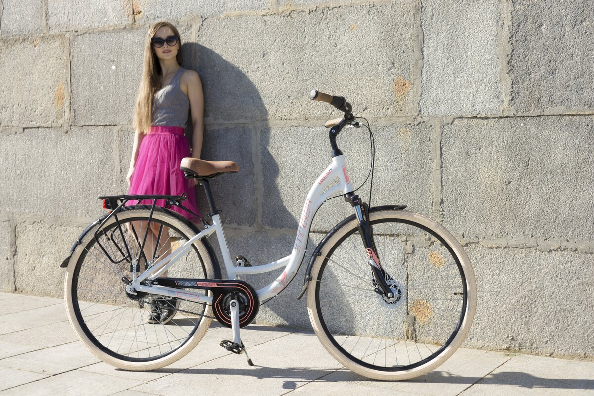 STINGER BARCELONA EVO - наш стильный алюминиевый городской велосипед - круизер для девушек. Велосипед должен выполнять не только “утилитарные” задачи, но и обязательно приносить эстетическое удовольствие, и это часто является приоритетом при выборе женского велосипеда.