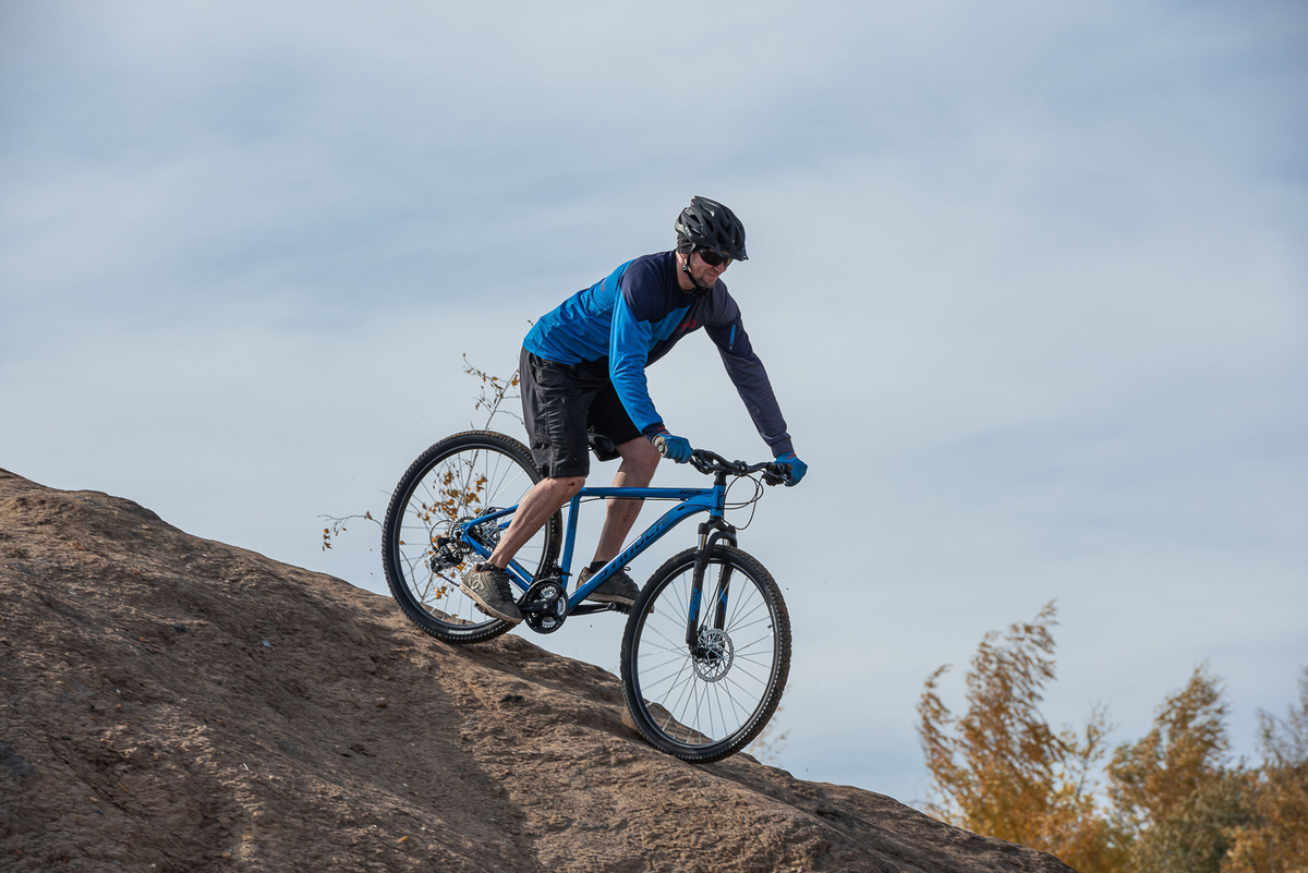 Трансмиссия c 3мя звездами спереди и кассетой на 7 звезд сзади с переключателем Shimano Tourney ty300, что в сумме дает 21 передачу с широким диапазон усилий для штурма любых высот. Колеса собранны с использованием двойных усиленных ободьев, что поможет избежать восьмерок и в комплекте уже установлены эксцентрики для быс