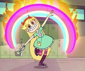 Но у авторов сериала получилось заинтриговать зрителя. Звёздочка не вела себя как типичный попаданец. Она не бросалась помогать всем бедолагам городка, в котором оказалась, только потому что у неё есть магия. Более того, она и не думала скрывать, кто она такая на самом деле. В одном из начальных эпизодов избалованная принцесса умудрилась превратить свою математичку в огра, и никого это не удивило.