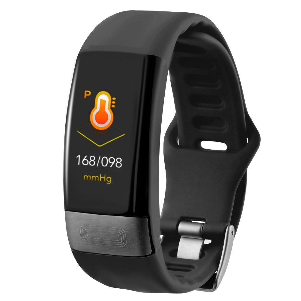 Продвинутые фитнес браслеты помимо стандартного набора функций обладают также тонометром (измеряет артериальное давление) и пульсометром. Нужные данные считываются с запястья владельца. Функции помогают следить за состоянием здоровья человека. Так, в США фитнес браслет спас пациенту жизнь: после сердечного приступа мужчину доставили в больницу, врачи считали показания, собранные фитнес браслетом, и вовремя определили нужный диагноз. GSMIN E11 GSMIN E11 – это новый фитнес браслет, который отлично подходит как для отслеживания спортивных показателей, так и для ежедневного контроля здоровья. Помимо распространенных функций вроде измерения пульса, шагов и калорий данный фитнес браслет оснащен такими редкими возможностями, как измерение артериального давления, измерения уровня кислорода в крови и построение ЭКГ. Данный фитнес браслет не лишен стандартных функций: подсчет шагов, расстояния и калорий, работа в нескольких спортивных режимов, постоянное измерение пульса, прием уведом