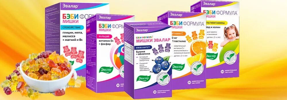 Весной, когда ребенку особенно не хватает витаминов, на выручку могут прийти витаминно-минеральные комплексы. Например, БЭБИ Формула Мишки от «Эвалар» в форме мармеладных пастилок с натуральным соком для детишек от трех лет.