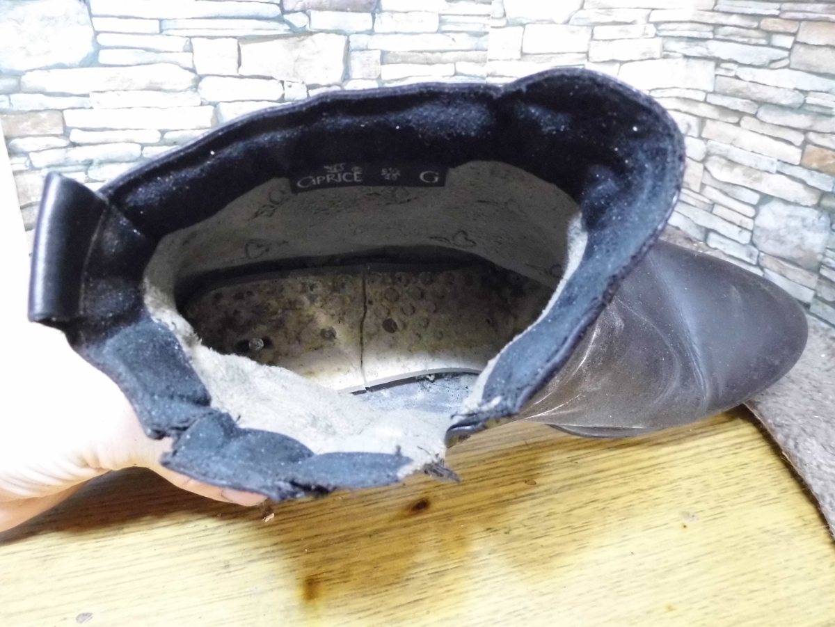 В двух словах, нам надо сформировать точно такую же стельку, как была. Дело осложняется тем, что достали мы её не полностью - не смогли. Точнее, смогли бы, но раздербанили бы верх вообще в хлам. Кстати, носик отклеивался, поставили косячок и прихватили стежками. Это не долго. Но уже можно радостно пинать бортики.