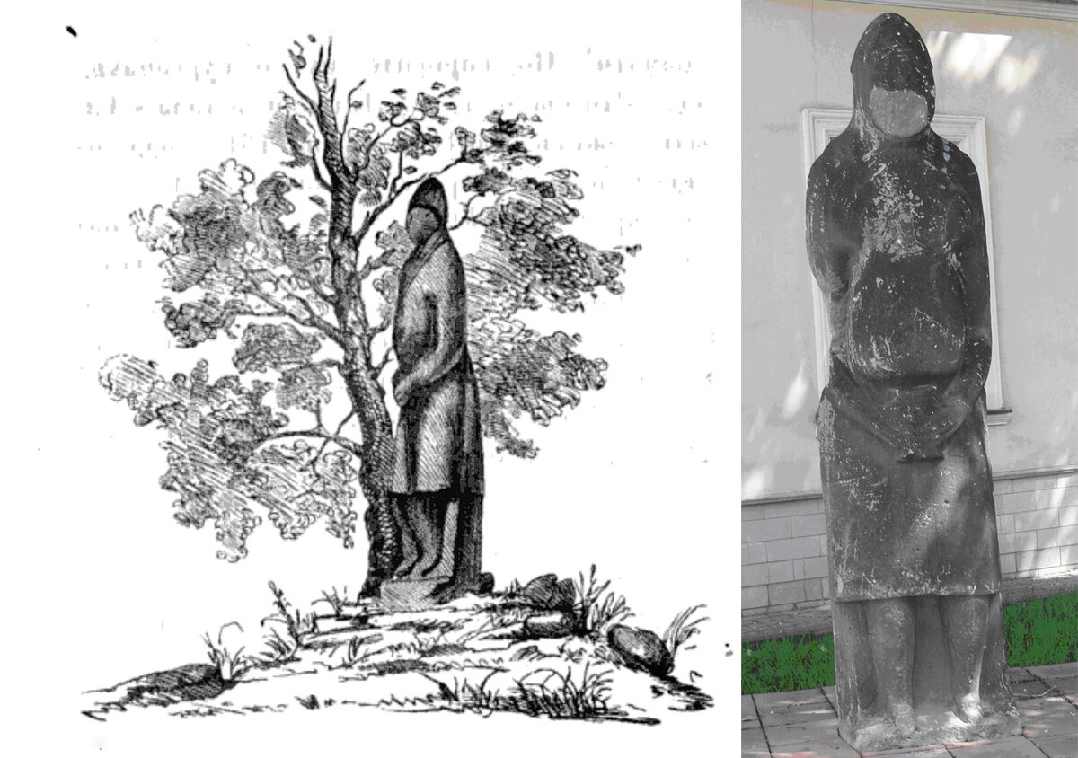 Наши новые читатели, наверное, даже не знают, что в Ленинке до сих пор находится половецкое изваяние воина 11—13 века из Южной России. Слева — рисунок А. П. Гмелиана (1860), статуя до поступления в Румянцевский музей, справа — современная фотография. Материал статуи — серый песчаник, высота — почти 3 метра, 295 см. «Статуя очень крупная, верх её сильно выветрен и оббит, нижняя часть сохранилась хорошо... Мужская (со сбитым лицом) стоящая фигура в шлеме. Сосуд с выпуклым венчиком и донцем. Полы кафтана оторочены галуном. Справа на поясе колчан со стрелами и непонятный длинный прямоугольный предмет; слева сабля и лук. Ноги упираются в подножку. Сзади на постаменте квадрат с крестом. Обработка короткими ударами острым орудием», так описала эту статую в монографии о половецких каменных изваяниях историк и археолог Светлана Плетнёва. Откуда половец в библиотеке? Из Зенино, имения Зинаиды Дивовой (Кагульской), племянницы графа Николая Петровича Румянцева. По-видимому, по распоряжению владели