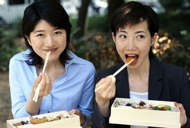 Не едят ложками и вилками не только японцы и китайцы, а еще корейцы и вьетнамцы. Первые палочки появились около 3000 тыс. лет назад, их придумали китайцы. Они больше походили на щипцы, их изготавливали из ствола бамбука. Первоначально они предназначались для удобства приготовления пищи. Щипцами было очень удобно переворачивать и доставать пищу. Вылавливая горячие куски пищи, повар не обжигал себе руки. Зажав между палочек нужный продукт, он пробовал его готовность, доставал готовые продукты, закладывал новую порцию. Длина палочек была 38 см, для приема пищи они вскоре укоротились до 25 см. Позже эту традицию подхватили и другие народы, в том числе и японцы. В Японии они получили название «хаси». С порционными блюдами все понятно, зажал кусок между палочек и отправил его в рот. Как быть с жидкими блюдами? Может японцы не едят супов? Едят, только своеобразно. Подаются первые блюда в высоких пиалах, сначала они вылавливают из жидкости кусочки, затем выпивают бульон. Японцы утверждают, ч