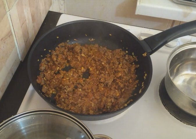 Привет! Сегодня мой канал я решил разбавить блюдом итальянской кухни! Это очень вкусный вариант блюда к ужину, да и смотрится оно интересно! Нужно: · каннеллони - 1 уп.; · мясо говядины - 250 гр.; · томат или помидор; · лук 1 шт.; · чеснок; · соль; · молотый черный перец; · растительное масло; · твердый сыр (либо пармезан) - 100 гр. Для соуса: · молоко - 40 мл; · сливочное масло - 1 ст.л.; · мука - 1 ст.л. Перекручиваю мясо в фарш. Нарезаю помельче лук и чеснок. Отправляю на сковороду с растительным маслом лук. Спустя 1 минуту, ввожу фарш. Перемешиваю и жарю минуты 3. Убавляю огонь и добавляю – соль, молотый перец, 1 ст.л. томата. Хорошо перемешиваю и ввожу чеснок. Минуту тушу и готово. Отвариваю каннеллони до полуготовности в соленой воде, на это уйдет минуты 3-4. Готовлю соус. Сливочное отправляю в кастрюльку и топлю. Ввожу муку и перемешиваю. Добавляю потихоньку в массу молоко, перемешиваю и варю до загущения на среднем огне. Мешать постоянно. Наполняю полуготовые макароны фаршем.