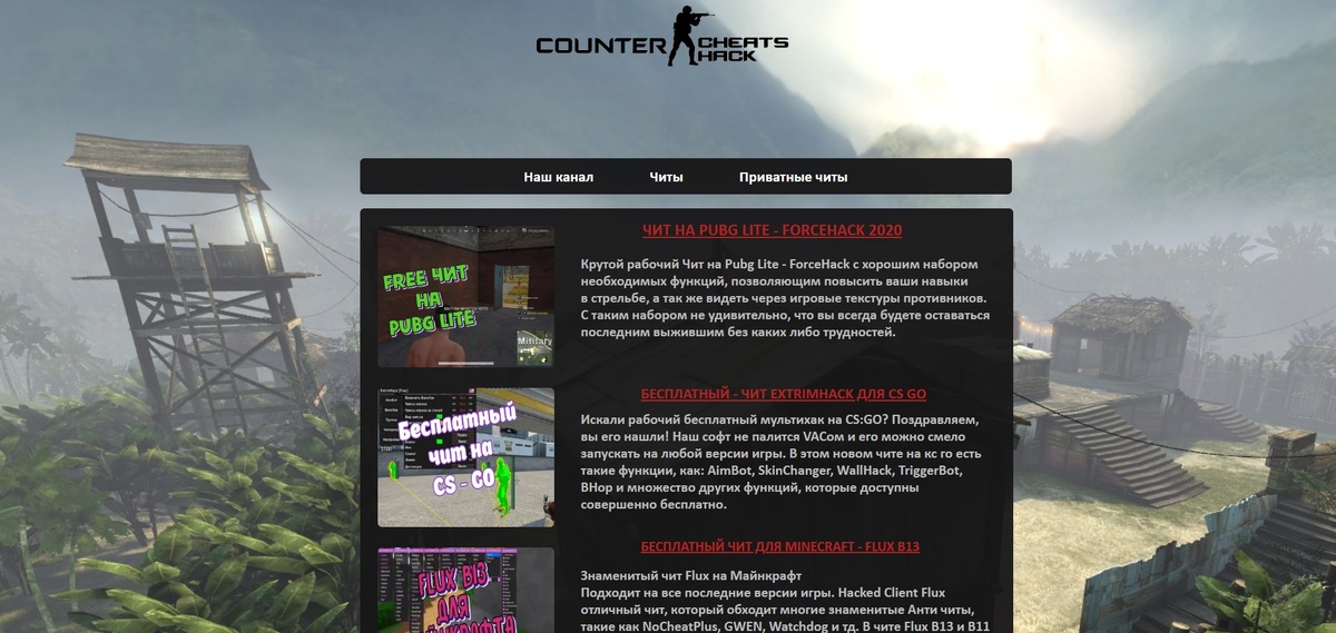 CounterCheats-Hack ------------------------------------------------------------ Очень хороший сайт для скачивания читов. ------------------------------------------------------------ Почему вам стоит зайти туда? 1)Бесплатные читы 2)Кому надо есть и платные 3)Читы без вирусов Думаю вам стоит поглядеть на сайт. Ссылка- https://www.countercheats.online/index.html