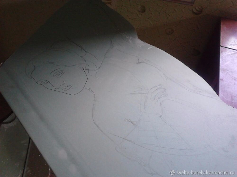 В этом мастер-классе хочу рассказать, как можно сделать античные фигуры для интерьера. Эти фигуры похожи на скульптуры , но с задней стороны они плоские и в последствии их можно приклеить на стену. Мастер-класс предполагает некоторые навыки работы со штукатуркой , но я думаю , если человек захочет сделать что-то подобное. Он сделает! Итак начнем! Из материалов нам потребуется гипсокартон, шпатлевка «Блик», лак акриловый, эмаль «Золото». Из инструментов — лобзик , шпателя , мастихины, губка и кисти. Сначала на гипсокартоне рисуем эскиз будущей скульптуры. Можно использовать копировальную бумагу. Лобзиком вырезаем фигуру по контуру. Вот такие контуры получились. У меня фигуры в рост человека (170 см ), такой был заказ. Нужно было сделать четыре скульптуры в ресторан. Под фигуры подставляем жесткий лист (у меня ДСП), для того чтобы фигуры не провисли. От шпатлевки гипсокартон становится влажным и может выгнуться. Начинаем наносить объем на наши фигуры. Берем небольшие куски гипсокартона н