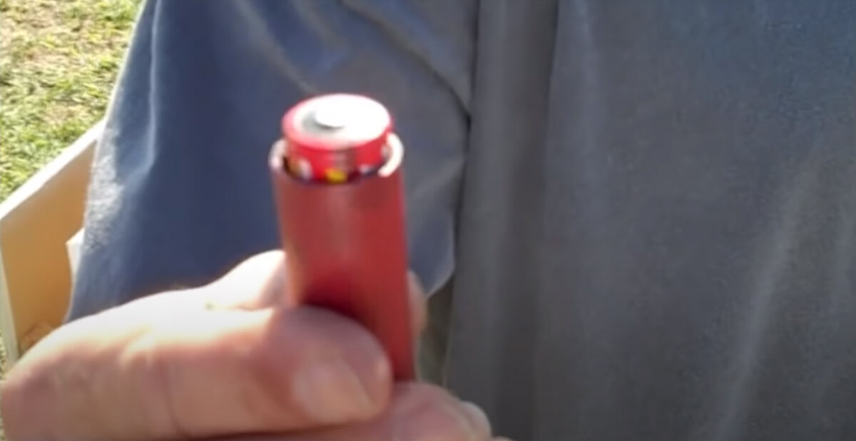 По идее ответ очевиден - ничего хорошего, и проверять подобное самостоятельно уж точно не стоит. Но, все таки, давайте взглянем на результат, если, вместо картечи или нормальной пули, патрон 12 калибра снарядить литиевой батарейкой. В теории, адекватная пуля из батарейки не получится - она и тяжелая, и ни о какой стабильности в полете и речи идти не может. Более того, в батарейке находится электролит, попадание которого в окружающую среду плохо на нее влияет. Но это все в теории. Как оно будет на практике решили протестировать авторы Youtube-канала TAOFLEDERMAUS, ссылку на оригинальное видео оставлю в конце статьи. В качестве снаряда выступила АА-батарейка, а мишенью служила металлическая канистра. Пробить мишень "пуле" не удалось, возможно потому, что она угодила в угол канистры. А вот сама батарейка разлетелась на куски. Ссылка на оригинальное видео.