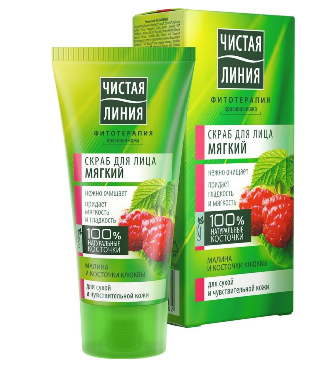 Кожа лица еженедельно независимо от ее типа нуждается в обязательном обновлении с помощью скрабов, пилингов и т.д. В противном случае от скопления омертвевших клеток на коже (которые естественно незаметны) может ускориться процесс появления морщинок, ну или если морщинки уже есть, их усугубление. Это конечно исключительно сугубо мое логичное мнение, предположение. Еще лет 10 назад самым популярным средством из экономичных был скраб чистая линия с абрикосовыми косточками. Он безусловно неплохой. Но на мой взгляд подходит не всем. И мне он показался немного жестким, поэтому применять его нужно с осторожностью. Относительно недавно по сравнению с абрикосовым скрабом, в линейке чистой линии появился скраб с соком малинки и косточками клюквы. Вот это моя любовь) Упаковка. Небольшой тюбик можно всегда взять с собой. Очень удобно. Характеристики. Имеет немного розоватый цвет, консистенцию эмульсии с вкраплениями белых частичек. Приятно пахнет. Экономичный по цене Действие. После него кожа