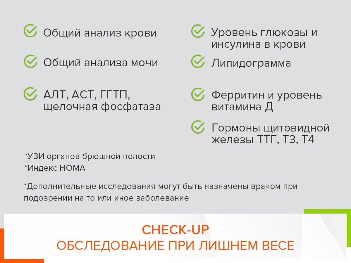 То, что я перечислила, это так называемый check-up, минимум (забирай себе, чтобы не потерять).