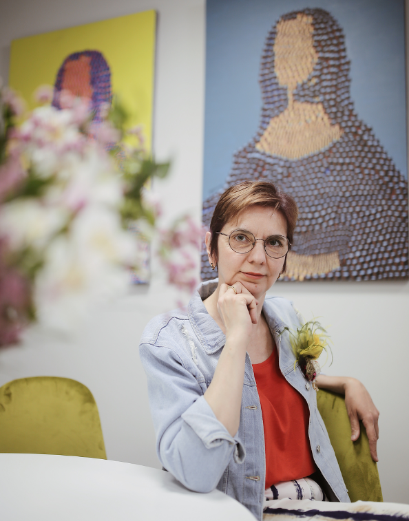 Ирине Гвоздецкой (Ира Куб — творческий псевдоним) сейчас немногим больше 50 лет. За последние два года она сумела выйти за рамки привычного для себя образа мыслей и рисования, перепробовала множество разных техник, сформировала собственный выразительный язык и сорвала аплодисменты на разборе работ художников с куратором музея современного искусства «Гараж».