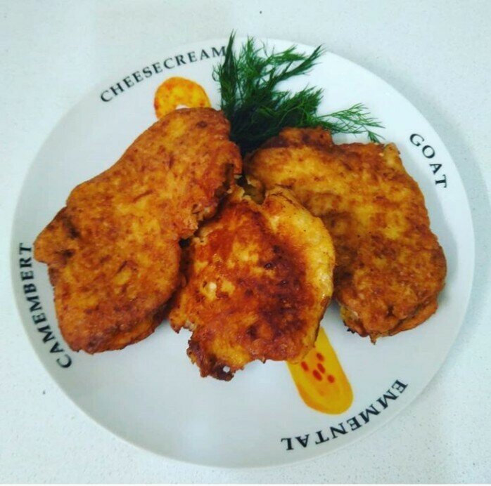 Всем привет! Пришла мне вчера идея: приготовить отбивные в картофельной панировке. Пару часов обдумала все, пока занималась делами домашними, и вот что получилось. Рецепт приготовления этого блюда таков: Грудку отбить, посолить, поперчить, и оставить ее постоять немного. Тем временем, сделаем панировку. Для этого нам нужно натереть картофель на мелкой терке( сок отжать, слить) Сыр также натереть. Его количество на ваше усмотрение, я брала соотношение сыра к картофелю: 300 гр картофеля и 150 гр сыра. Вбить сюда же 2 яйца. Добавить 1 ст л муки. Получается густой такой кляр. Добавьте в него еще немного соли и паприки. Далее сковороду раскалить маслом. Берем один кусочек мяса, намазываем его тонким слоем кляра( вообще его слой может быть любым, тут уже зависит от того, как вы больше любите.) Кладем на сковородку стороной с кляром, и после этого намазываем им и вторую сторону. То же самое повторить и со всеми остальными кусочками мяса. Жарить все это около 8 минут, на среднем огне