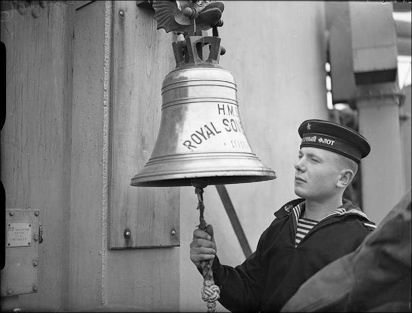Когда я увидел этот снимок советского матроса у британского судового колокола, захотелось раскопать подробности. Это оказалось не так уж и сложно.