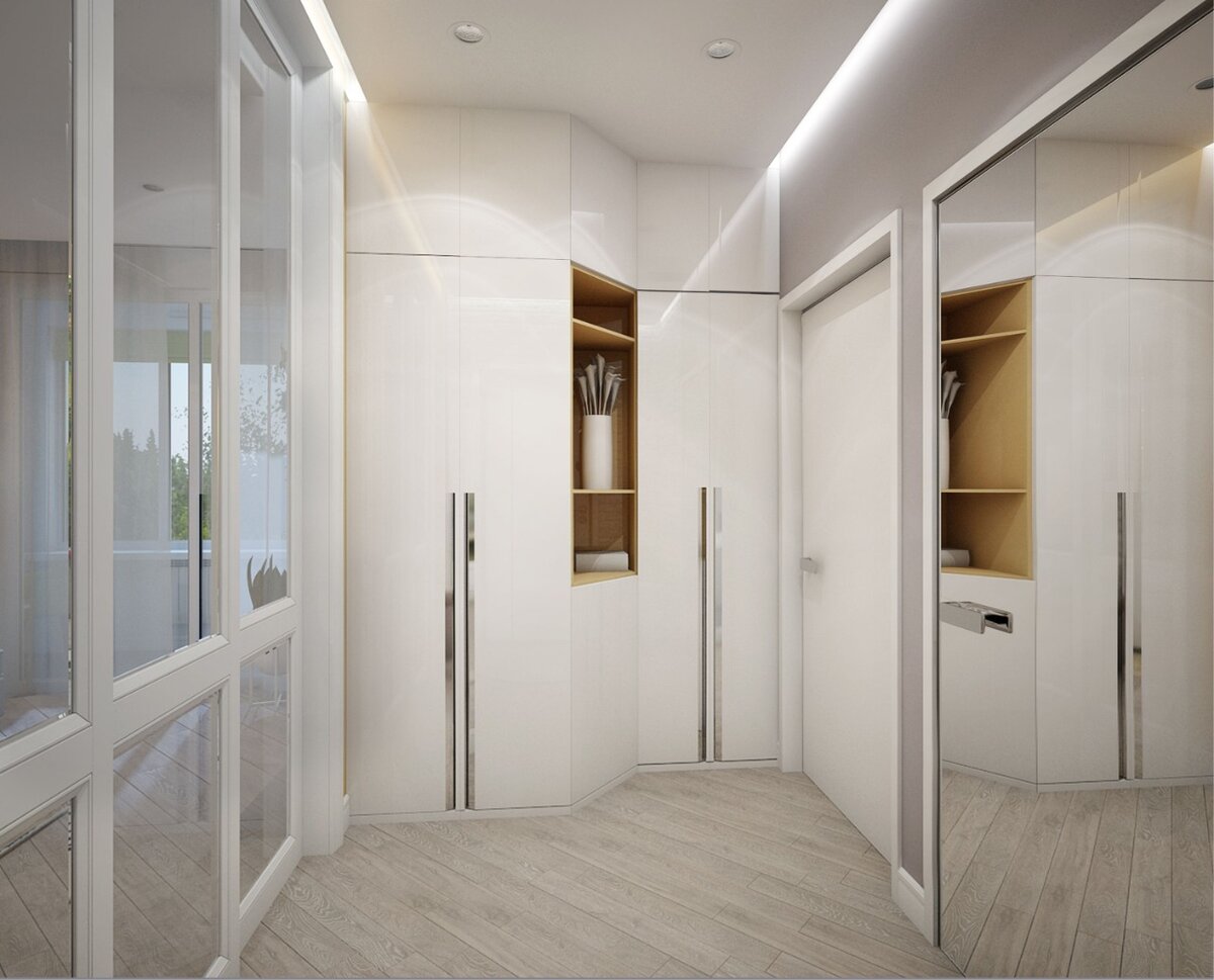 Проект «Лесная прогулка» Дизайн выполнен в сочетании двух стилей минимализм и эко-стиль. Нужно было сделать проект, в котором присутствовали бы контрастные природные пятна и сдержанные светлые основные тона. Хотелось много света и легкости, расширения пространства. Необходимо было использовать плавные линии и больше природных материалов. По помещениям задачи стояли следующие: предусмотреть места хранения, сделав их незаметными, легкими. В достаточно небольшом пространстве должны были разместиться кухня, гостиная, кабинет, просторный холл и спальня с гардеробной. В проект удалось изменить восприятие небольшого холла за счет прозрачной перегородочной двери. Так же в зале пропала стена и открылся портал для прогулки в лес. Пойдемте гулять! Легкий образ кухни белого цвета стирает ее, оставляя лишь намек на ее присутствие и образ лестного царства на фартуке. Представьте, что вы пришили после рабочего дня и разместились в лесу на поляне на удобном диване и 3 луны светят вам, вы читае