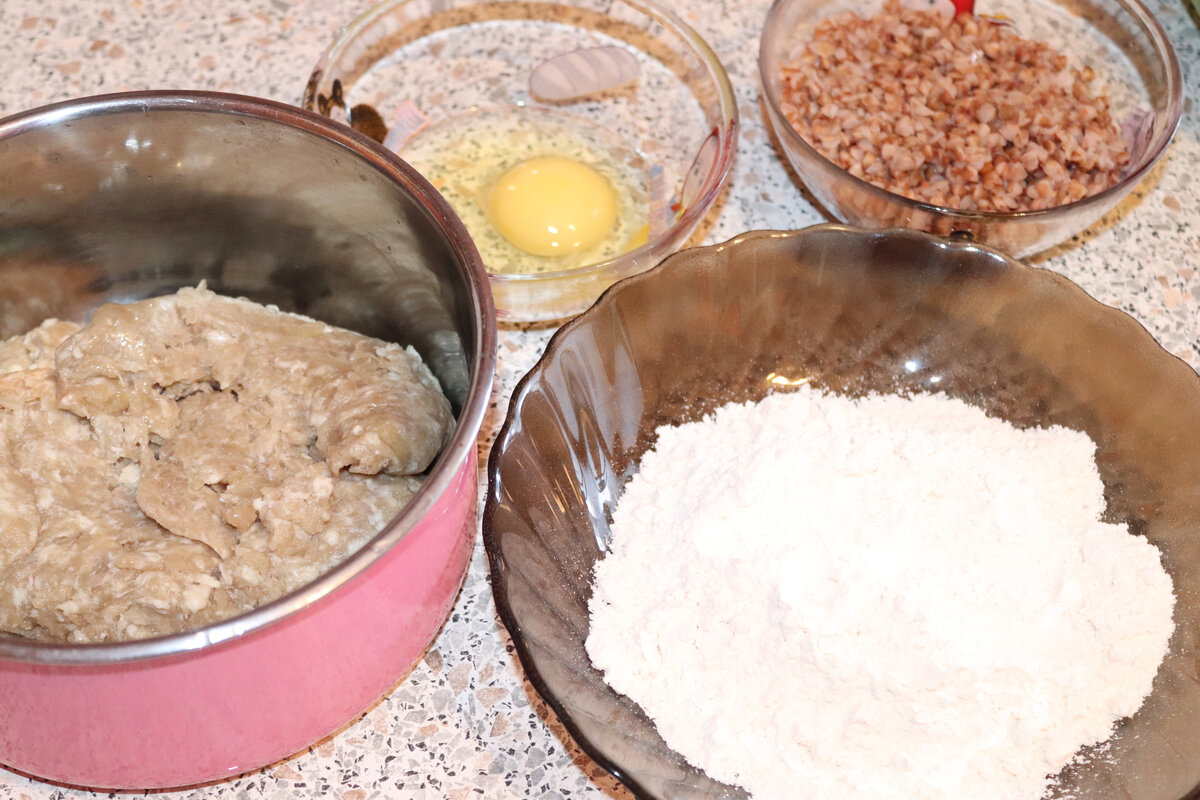 Котлеты с добавлением гречки получаются мягкие удивительно вкусные и простые в приготовлении. СОСТАВ: - 50 гр. гречки - 300 гр. фарша - 1 лук - 1 яйцо - 50-100 мл. растительного масла для жарки - 100 гр. муки - Соль, специи по вкусу Для фарша можно взять любое мясо. У меня фарш смешанный свинина с говядиной, когда перекручивалась мясо на мясорубке сразу перекрутила одну луковицу. Гречку я промыла и отворила до готовности. Добавляю ее к фаршу, яйцо, соль и перец по вкусу. Все эти ингредиенты тщательно перемешиваю. Затем влажными руками формирую котлетки. Обваливаю котлеты в муке и отправляю их на сковородку обжариваться до золотистой корочки на среднем огне. Предварительно сковороду разогрела. Приятного аппетита!
