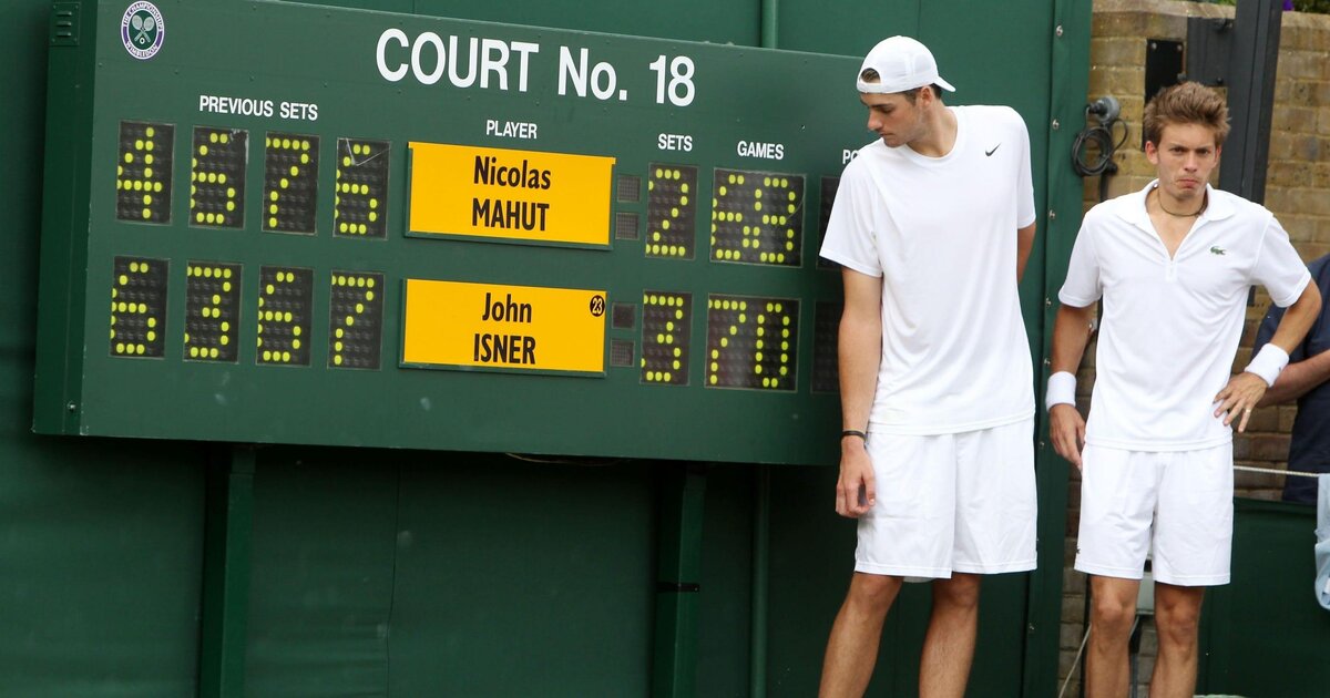 - Третий день продолжился со счета 59:59. Особые правила уимблдонского турнира позволили уже к тому времени побить рекорд по продолжительности матча. Зрители окружили корт, внимание к данному противостоянию было запредельное. 90 минут борьбы прервались ошибкой Николя Маю в 138 гейме. Тяжело быть в роли отыгрывающегося на протяжении всего сета.