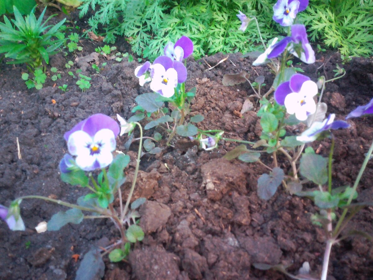 У многих в саду растет обыкновенная уличная фиалка, на её основе выведены многочисленные сорта с такой же высокой зимостойкостью и гибриды, которые собственно и называют «анютины глазки». Гибриды обычно плохо переносят зимы нашего континентального климата и через два-три года вырождаются, поэтому их выращивают как двулетники. Фиалка рогатая - это многолетнее холодостойкое растение, с очень длительным сроком цветения – с мая до заморозков. Сортов фиалок рогатых существует великое множество, они могут быть и однотонными, и разноцветными. В прошлом году в середине февраля посеяла три сорта: «гжельские узоры», «дама», «бамбини». Мелкие семена я обычно рассеиваю по поверхности без заделки в почву. В прошлом году всхожесть семян была замечательная, первые ростки появились уже через неделю (какие-либо специальные приёмы , например, стратификацию не применяла). Уже в мае на растениях появились бутоны. Переса