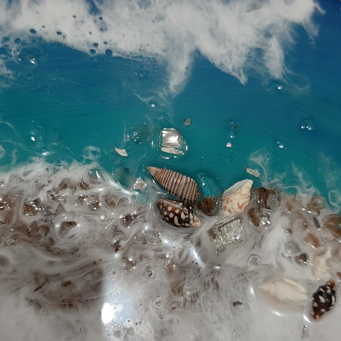 Получив заряд энергии и позитива на мастер-классе, я была готова творить, творить и творить! Но сначала нужно было все необходимое закупить. Изучив статьи в интернете, я стала составлять список. Получилось немало: смола, красители, основы для работы, весы, газовая горелка с баллончиком, стаканчики для смешивания смолы, палочки деревянные, средства защиты(перчатки, респиратор), скотч малярный, ножницы или нож канцелярский. Да и по стоимости оказалось дороговато. Самое дорогое - это смола и красители. Поэтому снова в интернет! Оказалось, что красители можно заменить любыми красящими веществами, только не на водной основе. Конечно, красители, созданные для эпоксидной смолы лучше, и мастера рекомендуют использовать только их, но на стадии обучения я решила немного сэкономить и заказала в интернет-магазине всего 5 цветов: зеленый, красный, синий, желтый, сиреневый. И конечно порошок для создания волн. А из других красящих веществ я решила купить масляные краски, стержни гелевые ( в интерне