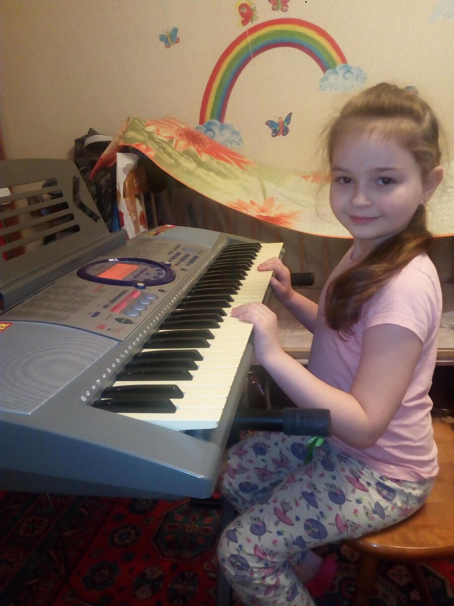 Вообще ребёнку, который никогда не ходил в музыкальную школу тяжело объяснить, как надо ставить руку, почему пальцы не должны быть деревянными и вообще почему после трёх клавиш, надо взять и переставить руку (речь идёт сейчас о правой руке), чтобы первый палец был на ноте фа. Мне до неё не удалось донести, почему надо переставлять пальчики, в итоге в комнату пришёл папа и спокойно всё ей объяснил ещё раз, видимо, лучше объясняет или просто она капризничала и не хотела слушать меня ( вариант брать её руку и переставлять её пальцы тоже был, но она всё равно меня не понимала).