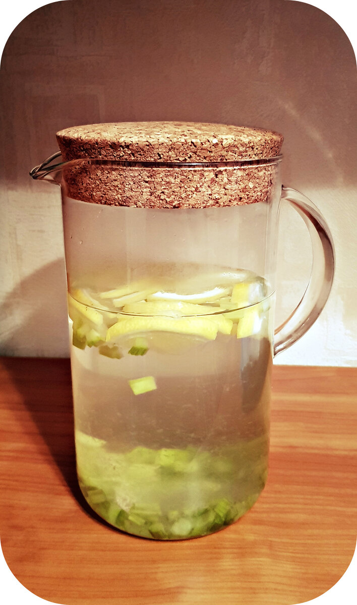 Всем бон жур! Вода это жизнь! она неотъемлемая часть нашей повседневный жизни. Но к сожалению, мы употребляем не достаточно воды, заменяем её соками и газировками. Поэтому, я, для вас нашел отличный рецепт, освежающего напитка, где 100% вода! Ингредиенты: Нарезаем половинками лимон, затем мелко режим сельдерей и хорошо всё промываем. Потом всё выкладываем в графин и заливаем кипятком. Можно ещё добавит аскорбинку, не повредит. И оставляем охлаждаться. Вот и всё, наш напиток готов! Всем приятного аппетита! Bon appetit! Спасибо, что зашли ко мне!) Если вам понравился рецепт, подпишитесь на мой канал НЯМ-НЯМ и оставляйте ваши комментарии, ну, а если нет, то всё равно оставляйте комментарии))