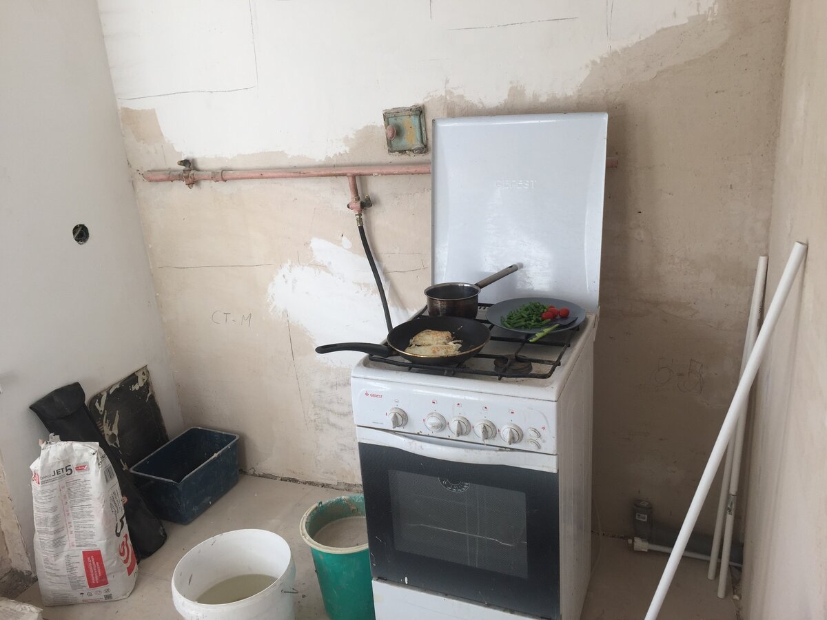 Невозможно оценить что-то привычное, пока не окажешься в ситуации где этого привычного нет. В моем случае я живу без кухни и это невыносимо. Чтобы не терять время, я решил жить в квартире, где делаю ремонт, как видите, из кухонных принадлежностей есть только плита. Предлагаю посмотреть как это, и что напрягает больше всего. Вы можете спросить «что за бред я сейчас прочёл?», но представьте ситуацию в которой у вас действительно нет кухни, а затем порадуйтесь что она у вас есть. Это ведь отличный повод. Читайте так же другие мои работы, такие как «сплю на сене» и «отрабатываю барщину чтобы не получить плетей». Это шутка если что, конечно можно подойти серьезно и устроить себе временную кухню, но я не привык жить на работе и это мой первый опыт, который я встретил со стойкостью, но понял, что даже самая ужасная кухня, все же лучше чем полное ее отсутсвие.