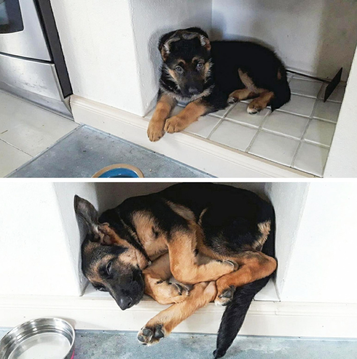 С возрастом у человека меняются привычки и вкусы. Но это не касается наших домашних животных. Они могут с самого детства и до глубокой старости спать в одном и том же месте или, допустим, играть с любимой игрушкой. Кстати, позы для сна наши питомцы тоже предпочитают не менять. Я всей душой обожаем хвостатых питомцев и не скрываю этого. Вот 20+ фотографий котов и собак, которые, несмотря на возраст, остались верны своим привычкам. 7 недель и 15 соответственно 2 месяца vs. 20 месяцев Эллиот со своей любимой игрушкой: 4 недели vs. зрелый возраст Детство vs. Зрелость 2 месяца vs. 9 месяцев Разница между снимками — 2 года Полгода и 8 лет 8 недель и 8 месяцев Годы идут, привычки остаются Старые привычки невозможно изменить Когда вырос — и в привычное место влезает только голова Одна и та же подушка. Вверху — 2 месяца, внизу — полгода 3 месяца vs. 3 года 8 недель и 8 месяцев Разница между снимками — 13 месяцев «Я и моя собака в 16 недель и в 4 года. Теперь она