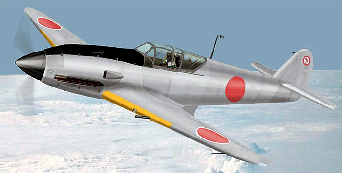 В 1940 г. конструкторы получили указание продолжить проектирование лёгкого истребителя Ki-61 для сухопутных войск Японии. И уже через год опытный экземпляр поднялся в воздух. В войска самолёты пошли в апреле 1943 г. Потолок составлял 10 км, скорость на высоте 590 км/ч, дальность 1800 км. Летчик был защищен броней, топливные баки протектированы.